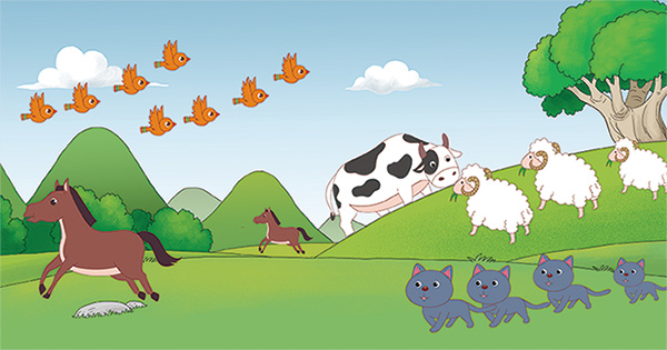 数一数,图里的动物有几只?把中文数字写出来。